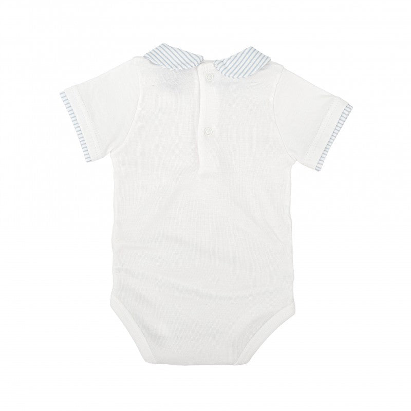 White with blue stripes make this an adorable Summer outfit for baby boys.