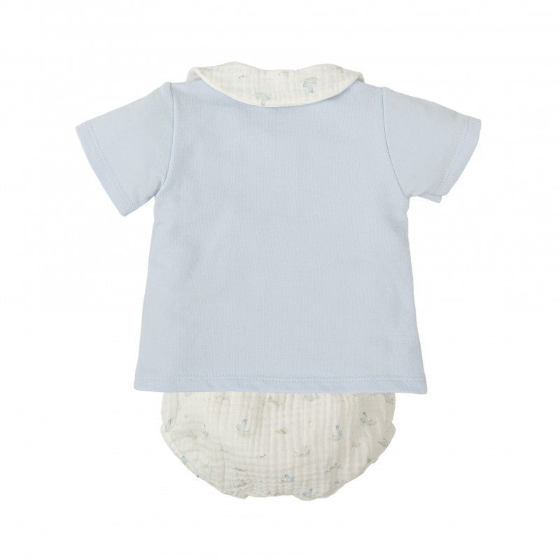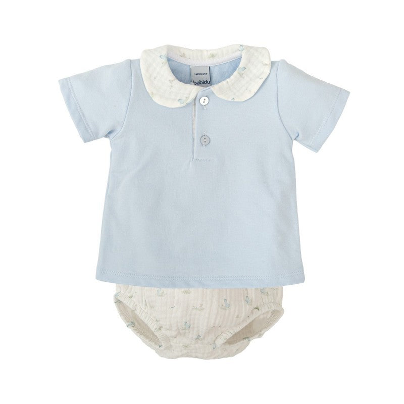 Available at Starlight Boutique is this Summer outfit for baby boys in blue and white.